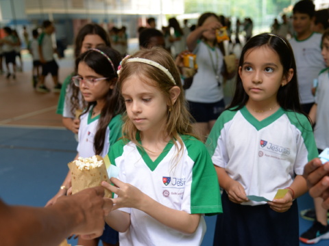 No primeiro dia de aula, os estudantes foram recebidos com um dia de pipoca e bolinho, gesto carinhosamente pensado para simbolizar nosso desejo de que, mesmo permeado por desafios inerentes ao processo de aprendizagem, tenhamos um ano leve e doce. Houve ainda um momento de oração, em agradecimento e prece a Deus pela nova etapa que se inicia.